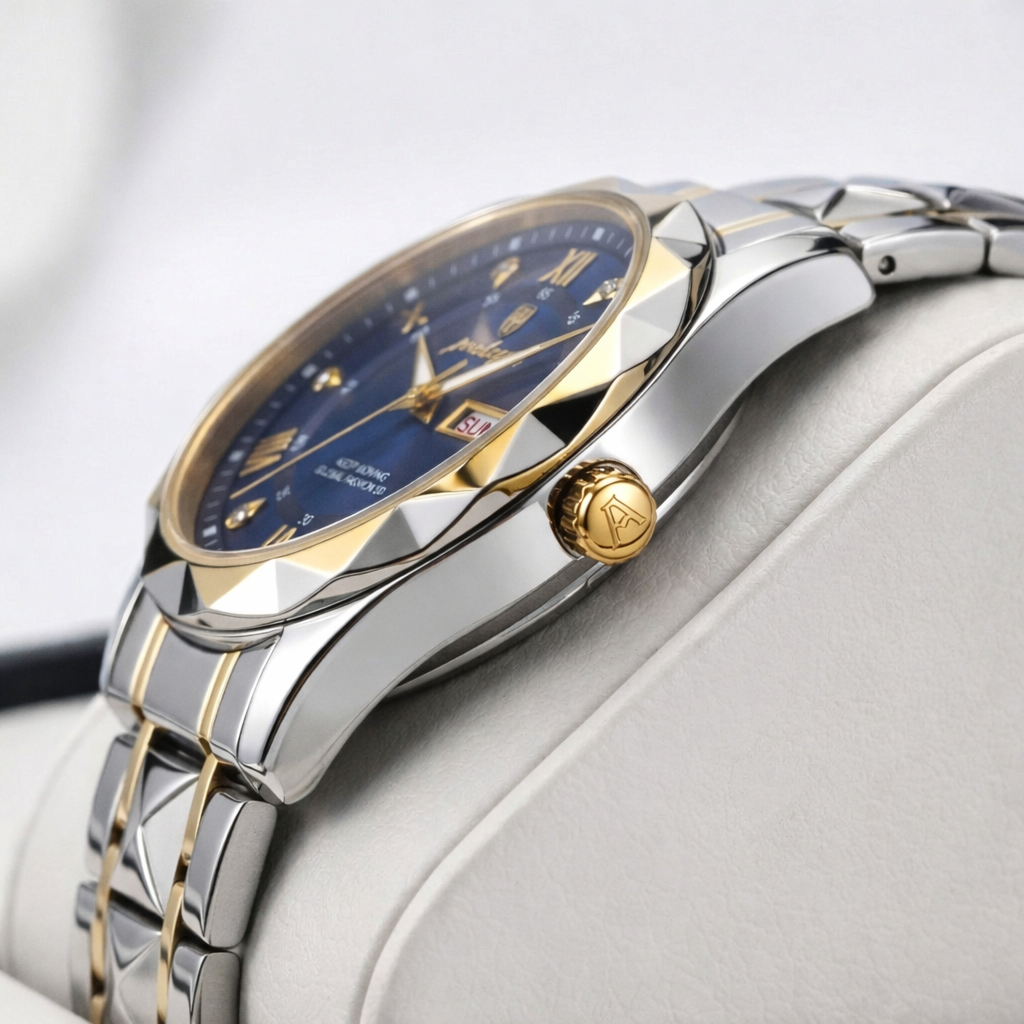 Luxury Stainless Steel Wristwatch with Royal Blue Dial
